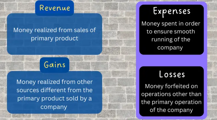 Income Statement Examples, Accounts, and Formula An income statement lists a company’s revenues, expenses, losses, and profits. The statement typically covers a period of time, such