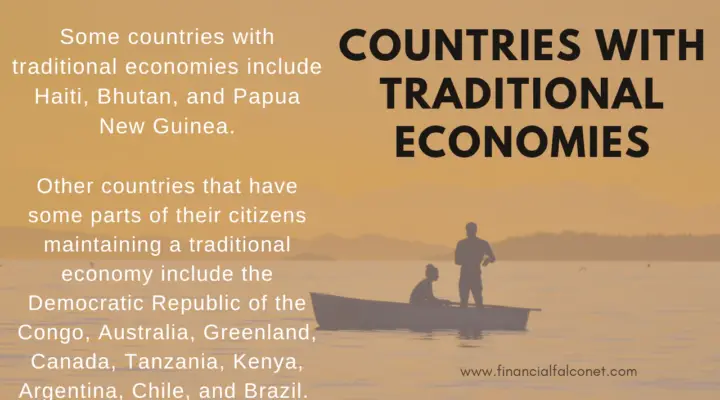Countries with Traditional Economy Common examples of countries with traditional economy include Bhutan, Haiti, and Papua New Guinea. The traditional economy is the oldest